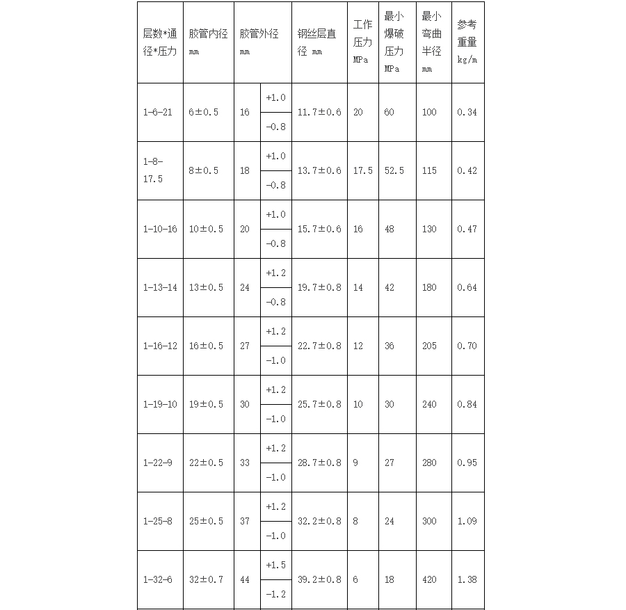 一、鋼絲編織膠管結(jié)構(gòu)是由耐液體的合成橡膠內(nèi)膠層、中膠層、Ⅰ或Ⅱ或Ⅲ層鋼絲編織增強(qiáng)層、及耐天候性能優(yōu)良的合成橡膠外膠層組成。